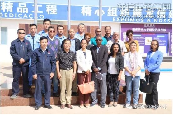 2018年元月30日,佛得角基建設施部部長尤妮絲.席爾瓦女士一行15人,在項目管理組組長王世國及龍信集團駐場代表、項目負責人施錦元等人的陪同下,視察了援佛得角大學新校區項目,隨同尤妮絲. 席爾瓦部長前來的還有,部長辦公室主任伊內達·莫拉斯、基礎設施局局長阿德麗莎·戴爾佳多、道路管理司司長愛德華多·洛佩斯、住房管理司司長弗朗西斯科·奈維斯、國家實驗室院長卡拉·馬丁斯、計劃、預算與管理局局長埃德娜·絲奎拉、部長顧問馬賽杜等。
