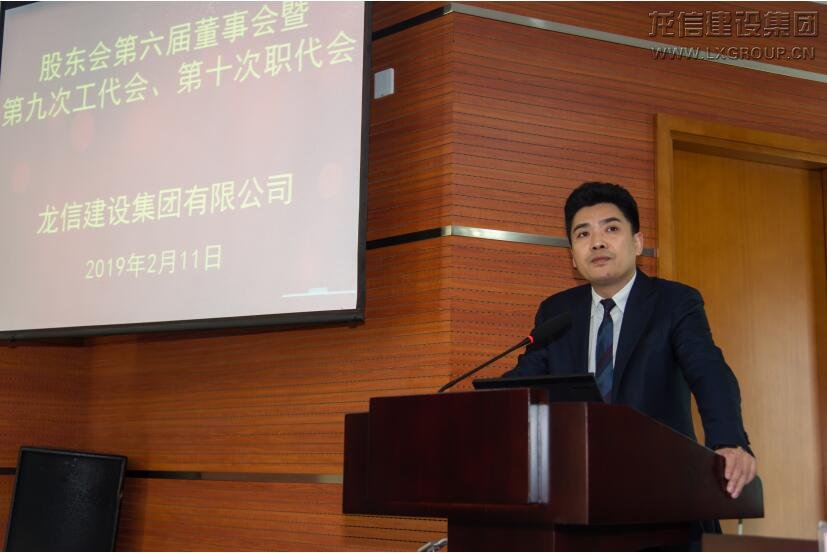 2019年2月11日,龍信建設集團有限公司股東會暨第九次工代會、第十次職代會在龍信大廈20樓會議室召開。龍信集團股東、第五屆董事、監(jiān)事、各板塊負責人、分子公司負責人、工會(職工)代表、集團條線及部門負責人、受表彰人員等共計172人出席會議。海門市住建局工會主席楊美如蒞臨會議指導并發(fā)表講話。