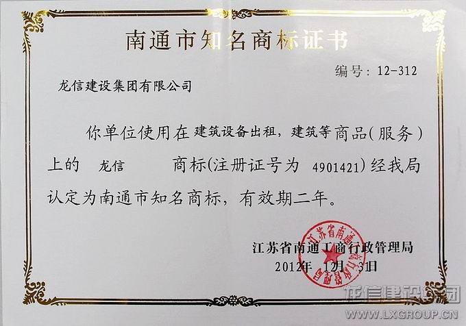 此外,在每一個龍信人的努力下,基于業(yè)界的口碑、市場的認可、大眾的肯定,龍信集團一直享有較高的聲譽,“龍信”商標經(jīng)江蘇省南通市工商行政管理局認定為南通市知名商標。