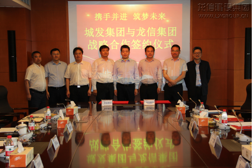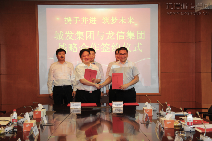 5月30日,龍信集團與城發集團在龍信大廈二樓南會議室舉行戰略合作簽約儀式,海門市常務副市長沈旭東、海門市政府辦公室副主任陳小鋒、城發集團董事長何耀華、總經理楊勇、副總經理蔡偉,龍信集團董事長陳祖新、總經理唐愛東、常務副總何咸軍、財務總監樊忠飛等共同出席儀式。