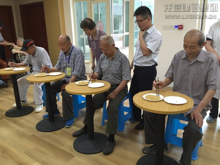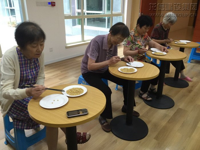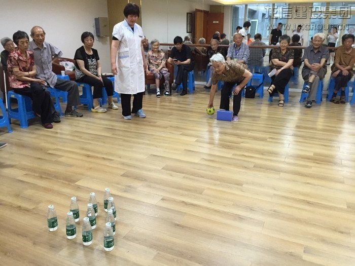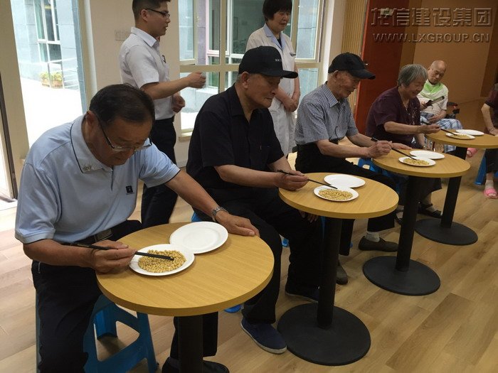 第二個比賽項目是快樂套圈。長者們認真的投擲著手中的套圈,為套中而欣喜,也為落空而遺憾。但是最幸福的事,不是你摘得了桂冠,而是看到你的臉上洋溢出許久未見的笑容。1301室的陳叔叔自中風后身體狀況一直不佳,平時的起居飲食需要保姆的照料,他坐著輪椅來到規定的比賽投擲線,用自己稍稍顫抖的右手接過套圈,當大家看到這樣的距離對他來說比較困難的時候,參賽的其他叔叔阿姨主動提出要為他縮短距離。在樂頤薈這個大家庭里,每一次活動,規則不重要,輸贏更不重要,重要的只有這彌足珍貴的鄰里情誼。當陳叔叔投中時,他笑了,這一笑溫暖了在場的所有人。最終,508室的俞阿姨、1101室的施叔叔、1301室的陸阿姨奪得了前三甲。