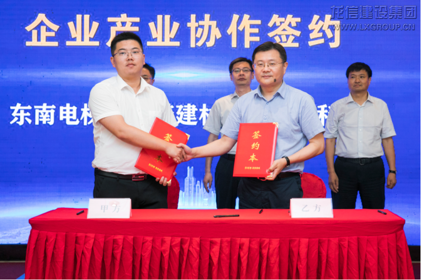 大會現場,在海門市人民政府副市長勞劍東,蘇商會副會長兼秘書長俞文勤,龍信集團董事長陳祖新的見證下,中梁集團和南通現代建筑產業園合作的中梁集團建筑產業基地項目、萬科集團和南通現代建筑產業園合作的萬科集團采筑平臺項目、阿路美格和南通現代建筑產業園合作的A級防火金屬復合板及防火保溫一體化產品項目集中簽約。龍信集團與東南電梯、久諾建材、法寧格科技進行產業協作簽約。