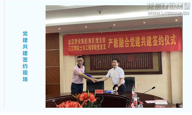 為深入學習貫徹習近平新時代中國特色社會主義思想,切實把黨的二十大精神落實到位,創新基層黨建工作載體,提升產教融合水平,在與三江學院校企合作的基礎上,2023610日下午,龍信集團第一分公司南京黨支部應邀來到三江學院,就校企黨建共建合作事項進行互動交流,確立為黨建結對共建單位,并簽訂結對共建協議。