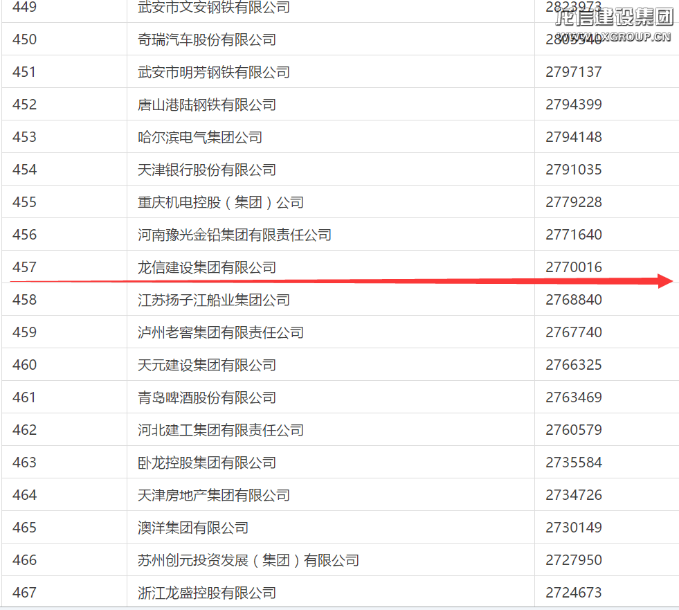 龍信建設集團蟬聯中國企業雙500強
